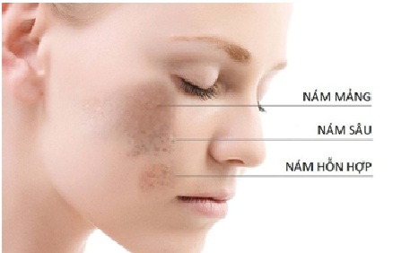 - Nám hỗn hợp: đây là sự tổng hợp của cả hai dạng nám trên, vừa có nám mảng vừa có đốm nám đậm ăn sâu và bám từ lớp thượng bì vào trong vùng hạ bì.