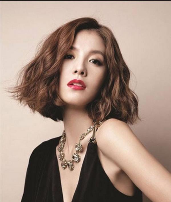 Tóc ngắn uốn gợn sóng nhẹ đang được nhiều sao lăng xê. Nếu muốn sở hữu kiểu tóc này bạn nên chọn nhuộm màu sáng phù hợp để nổi bật. Kiểu tóc này giúp bạn ăn gian tuổi rất hiệu quả.