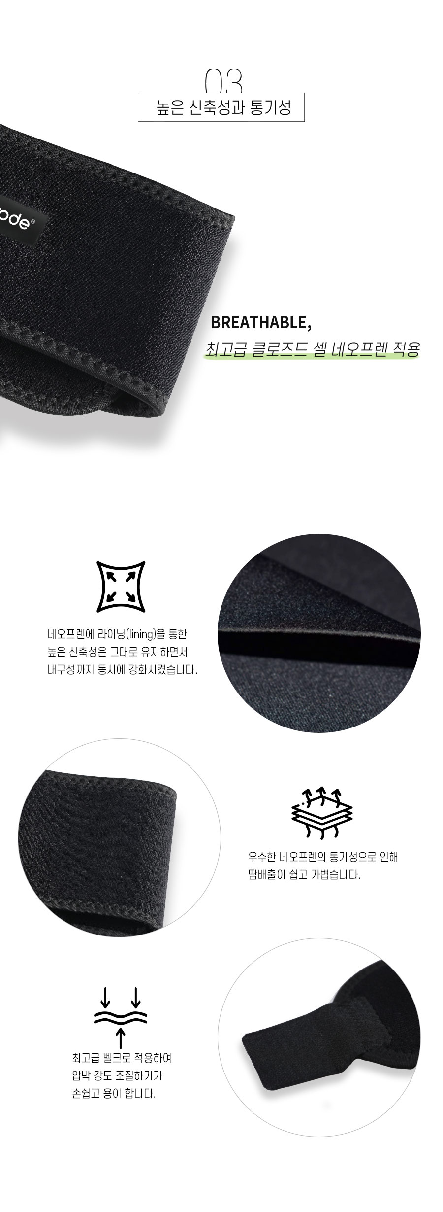 Sử dụng Neoprene cao cấp + lớp lót mềm, giúp thoát mồ hôi tốt và êm ái suốt ngày dài.