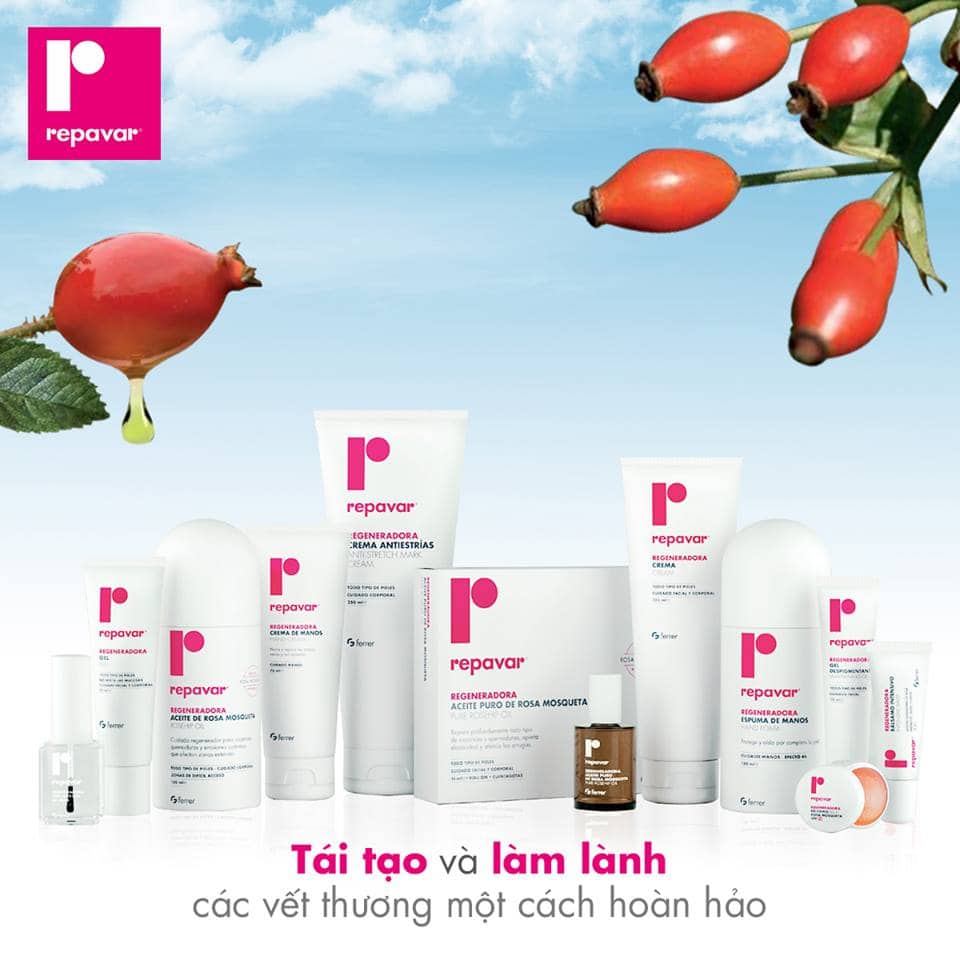 Dòng sản phẩm Repavar Regeneradora là dòng dược mỹ phẩm hoàn chỉnh với hoạt chất chính là tinh dầu tầm xuân và các hoạt chất khác (vitamin E, collagen và các chiết xuất thực vật...), giúp tái tạo, làm lành và phục hồi, dành cho tất cả mọi loại da.