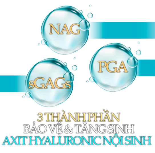 + NAG, PGA, sGAGs: Bộ 3 thành phần giúp bảo vệ và kích thích tăng sinh Axit Hyaluronic tự nhiên trong da.