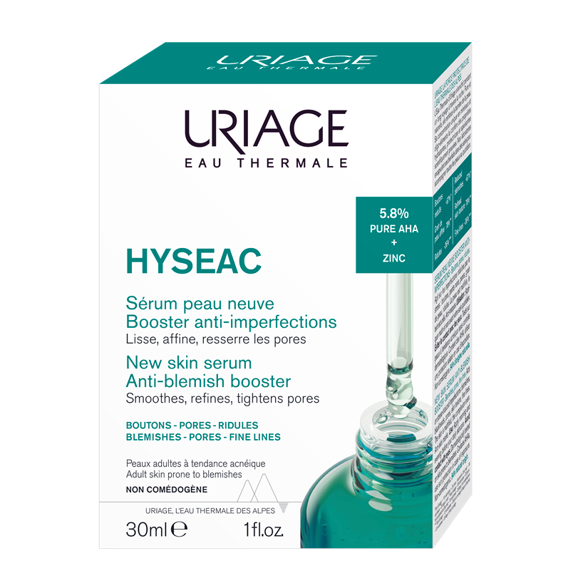 Serum Hyséac tăng cường cho da dầu mụn với 5.8% AHA, Kẽm và Nước khoáng Uriage. Công thức chuyên sâu giúp hỗ trợ cải thiện tình trạng mụn, điều tiết bã nhờn và tái tạo bề mặt da. Mang lại làn da sạch thoáng, mịn màng, đều màu và khỏe mạnh hơn.
