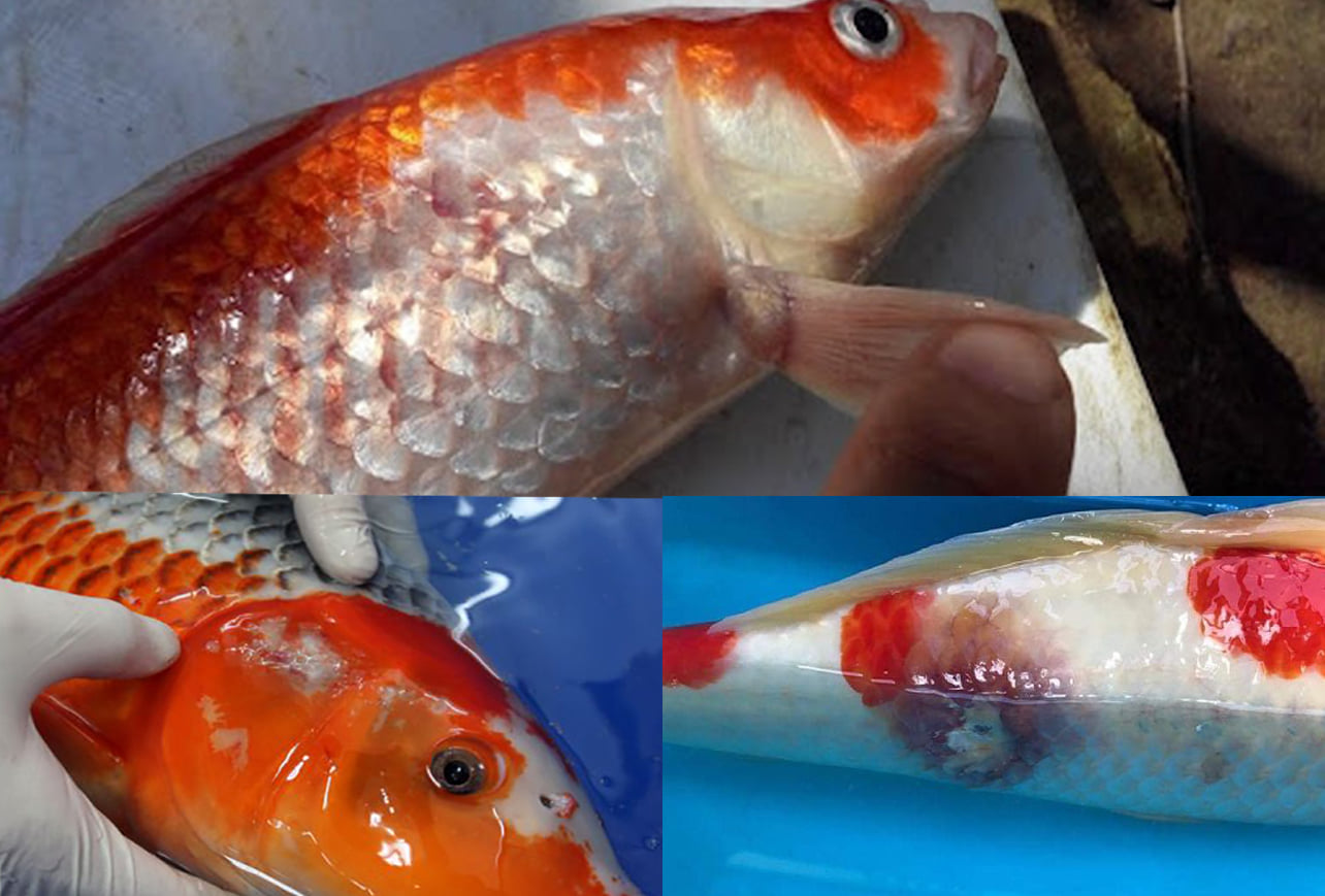 Cá koi bị đỏ mình, lở loét là bệnh rất nguy hiểm, nếu không chữa trị dứt điểm tận gốc nguyên nhân gây bệnh sẽ dễ bị tái phát lại, dẫn tới lây lan và cá chết hàng loạt, rất khó kiểm soát.